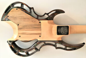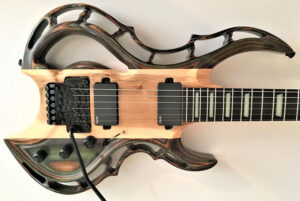 LISTE DES COMPOSANTES INSTALLÉES: PICKUP: EMG KH21 KIRK HAMMET (PICKUP ACTIF) ( H H ) TREMOLO: FLOYD ROSE ORIGINALE 1000 SERIE PRO (LOW PROFILE) BLACK TUNING: SHALLER M-6 3+3 GUITAR MACHINE BLACK KNOB: DOME KNOB BLACK STEEL 6MM SHAFT STRAP LOCK: SHALLER BLACK BACK PLATE AVEC LOGO MIKE GUITARE GRAVÉ JACK PLATE BLACK STRINGS: GHS BOOMER 09-46 BODY DE GUITARE : LE CENTRE EST EN ÉRABLE DE CHAQUE CÔTÉ LAMINÉ ROYAL CAMO GUITARE TRÈS CONFORTABLE ERGONOMIQUE ET TRÈS LÉGÈRE POIDS TOTAL DE : 7.7 LIVRES OU 3.5 KG