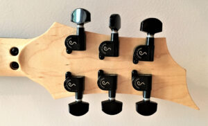 LE MANCHE (NECK): PROVIENT DE: WARMOTH CUSTOM GUITAR CONSTRUCTION: MODERN TILTBACK (24 3/4 POUCES SCALE GIBSON STYLE) TRUSS RODS: DOUBLE TRUSS RODS SHAFT WOOD: FLAME MAPLE FRETBOARD WOOD: EBONY (ÉBÈNE) NUT WIDTH: 1-11/16 (MODERN MEDIUM) RIGHT HANDED (DROITIÈRE) NECK BACK PROFILE: 59 ROUNDBACK